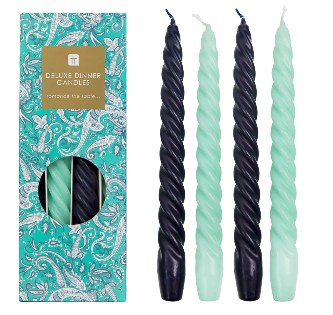 Boho spiral candles green/black 4pcs