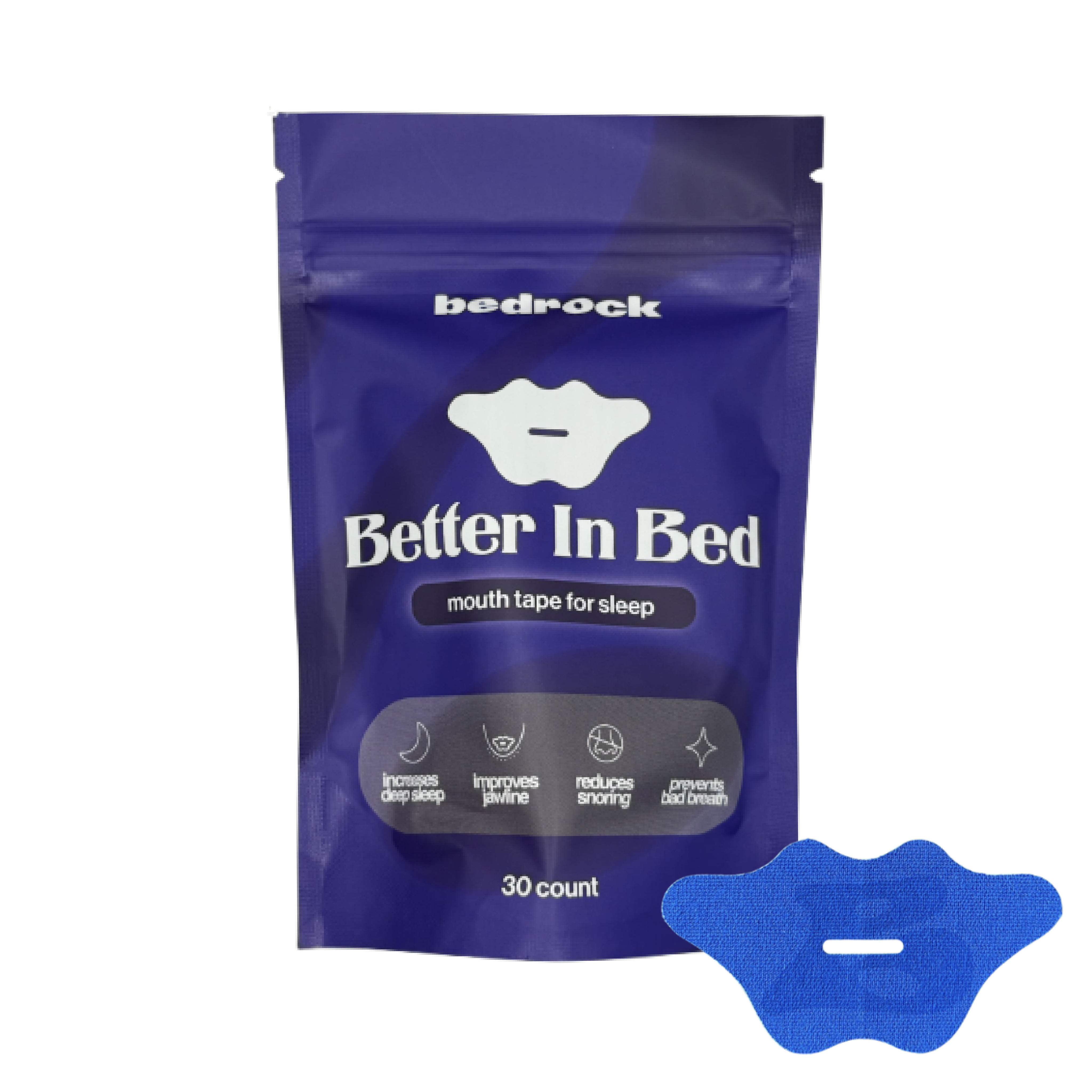Bedrock Mouth Tape is a premium silk mouth tape that supports natural nasal breathing during sleep. It gently holds the mouth closed—without discomfort—helping the body heal itself in accordance with its natural rhythm.