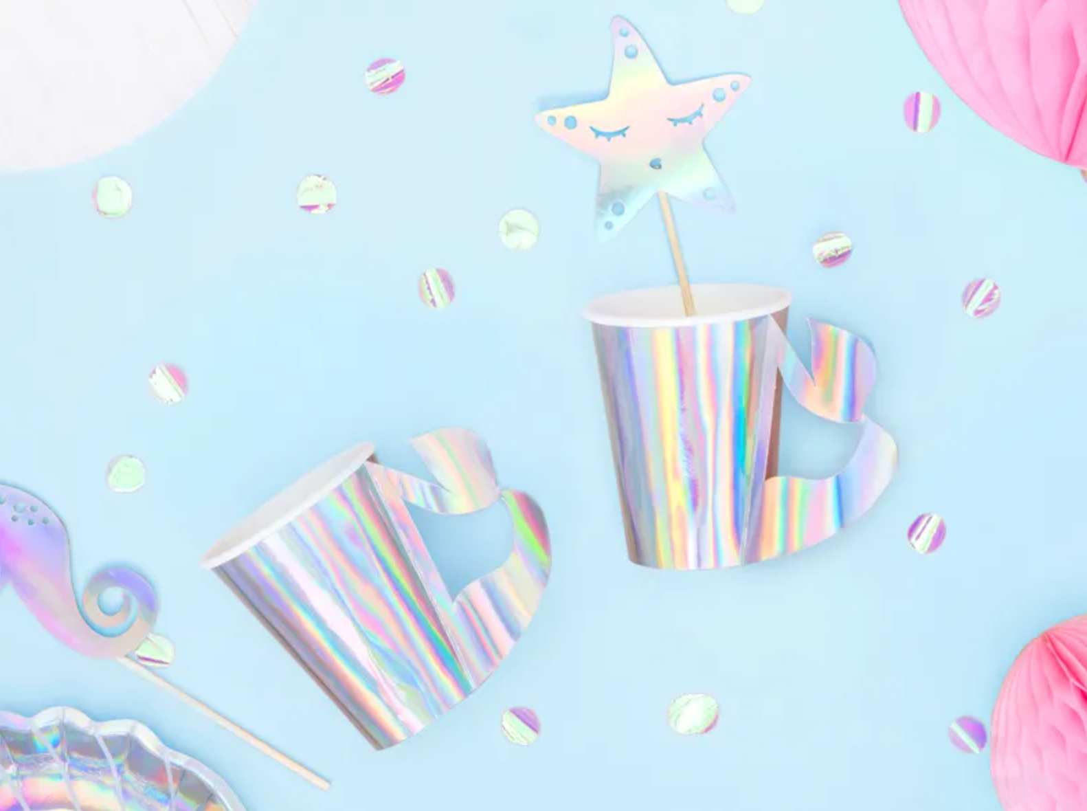 Mermaid cups made of opalescent paper with a tail-shaped handle, capacity approx. 220 ml. (1 pack / 6 pcs.) Read more