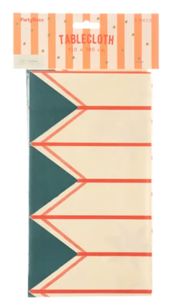 Paper tablecloth with a print of thin red stripes and gold stars, mix, size 180 x 120 cm Read more