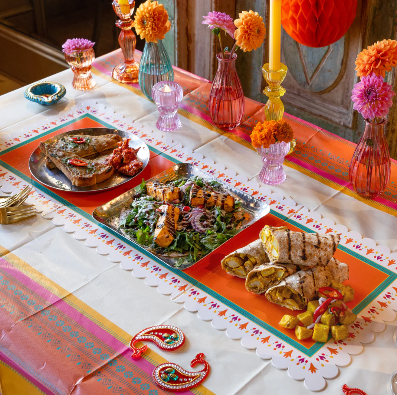 Our Spice paper tablecloth in orange, pink, and yellow was inspired by the Festival of Lights – Diwali . Made... Read more