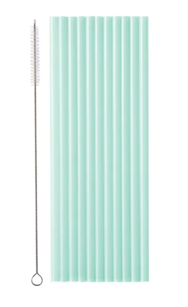 Sage-colored plastic straws, approximately 7 mm in diameter, approximately 23 cm long. Set includes a cleaning brush. Reusable. (1 pack... Read more