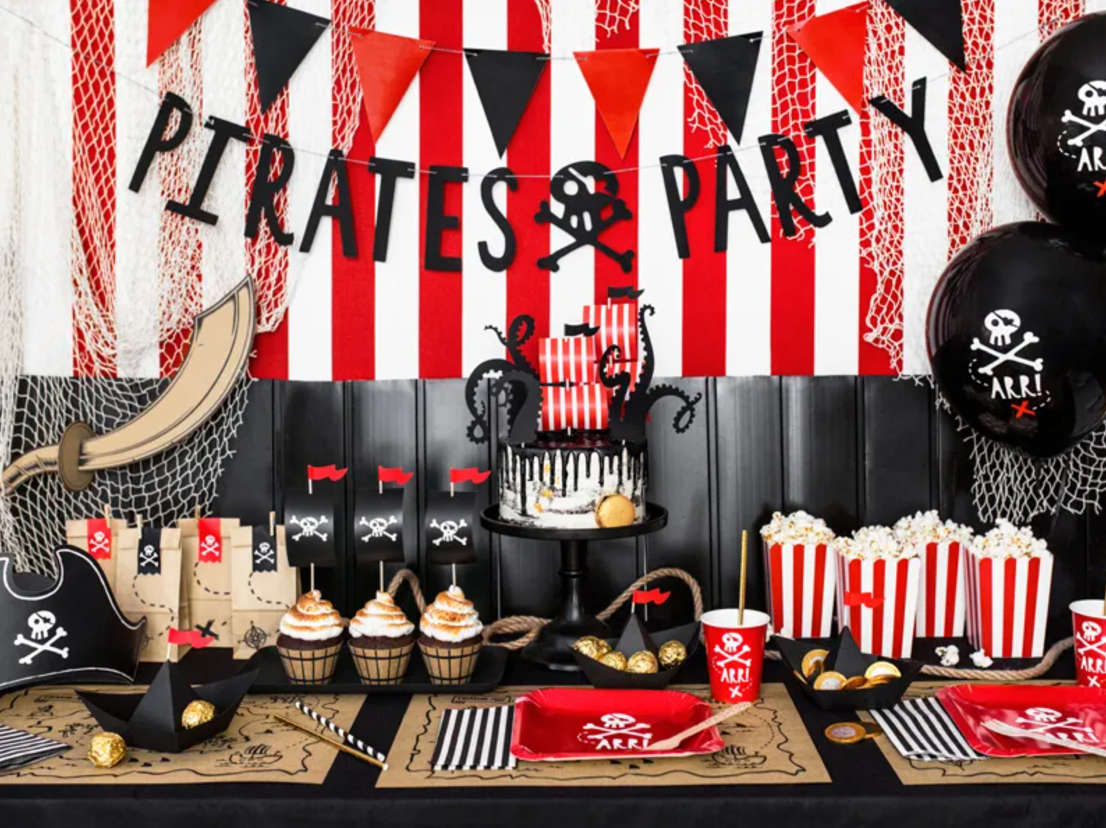 Pirates paper plates, red with white print, dimensions approx. 20 x 20 cm. (1 pack / 6 pcs.) Read more