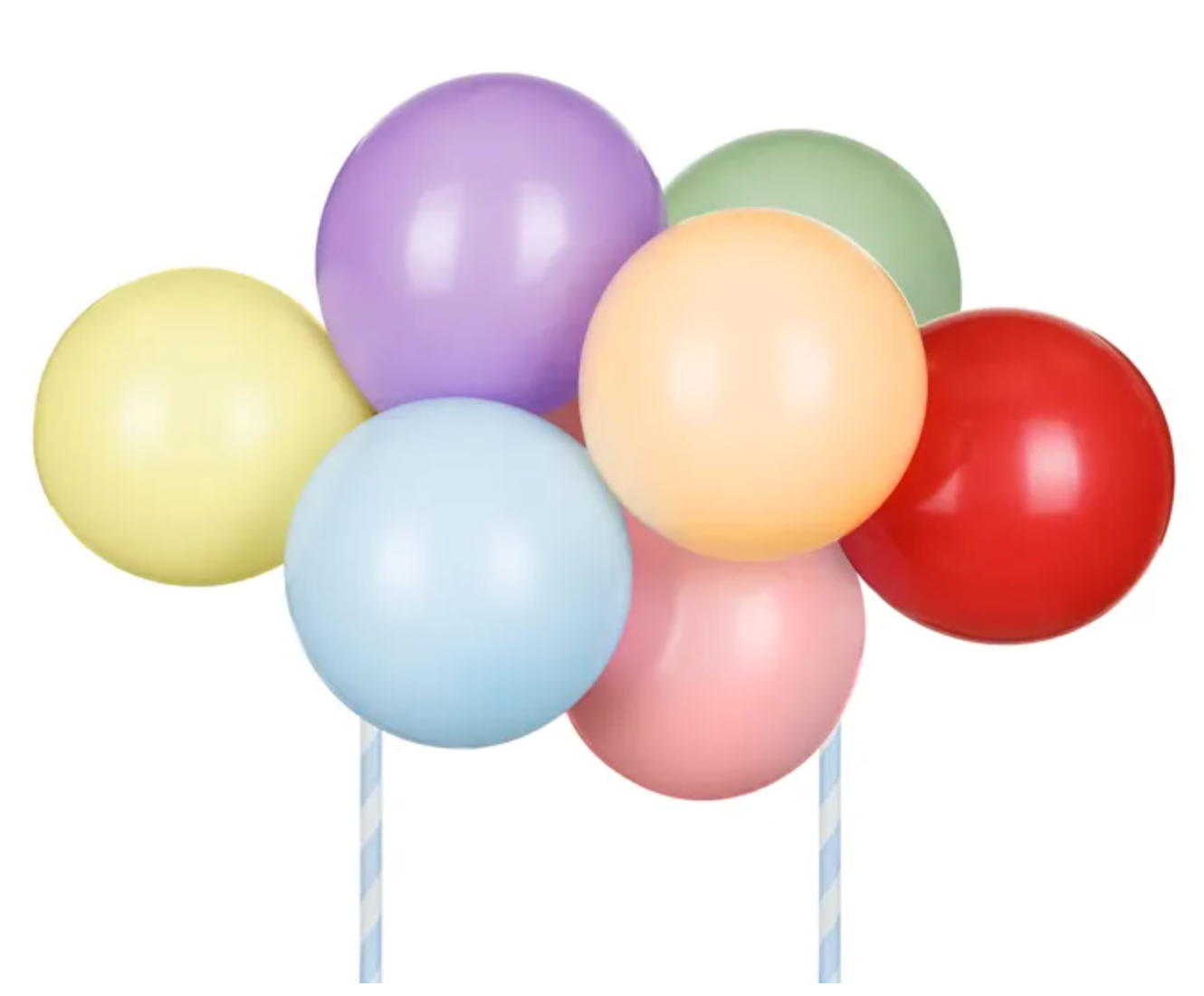 Rainbow balloon cake topper, mix of colors, set includes 10 balloons, 2 straws and 6 pieces of ribbon, height after... Read more