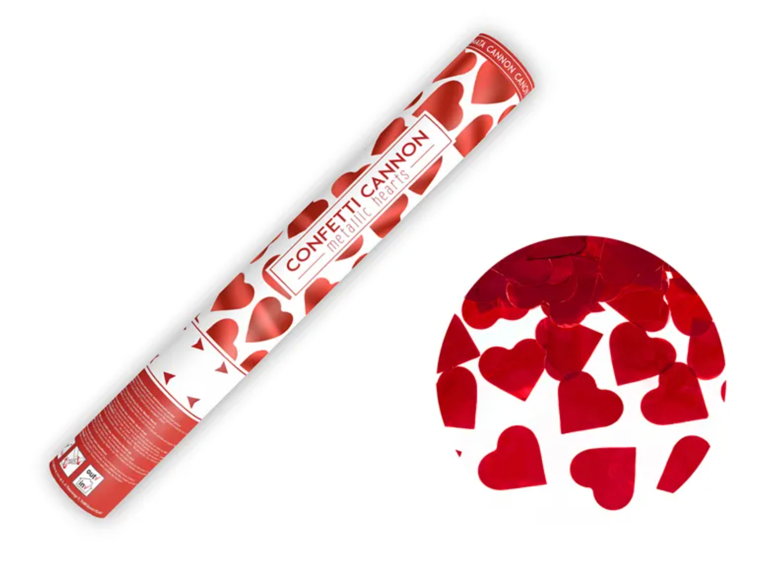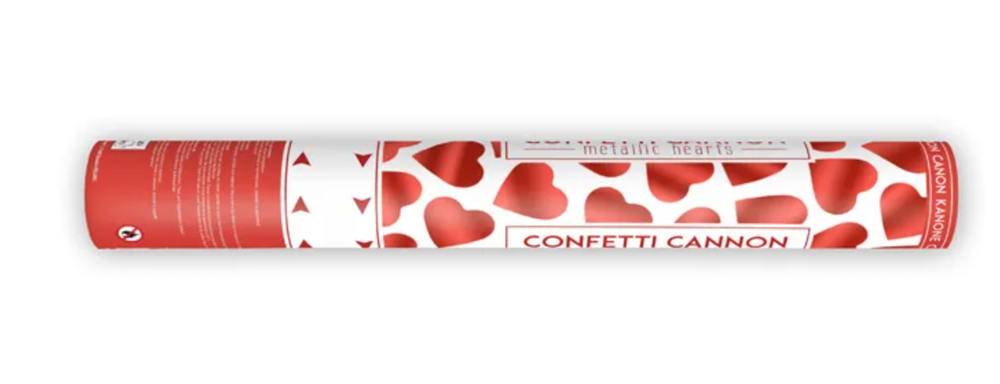 A tube shooting out red metallic hearts, 40 centimeters long. Read more