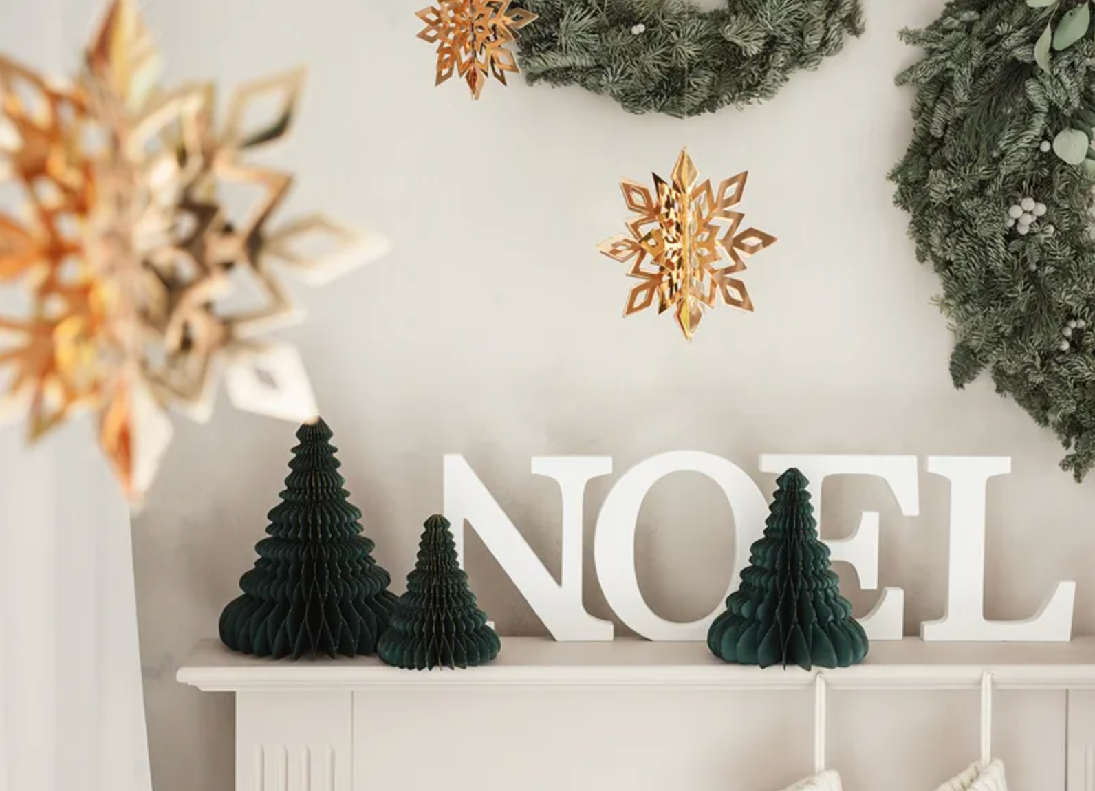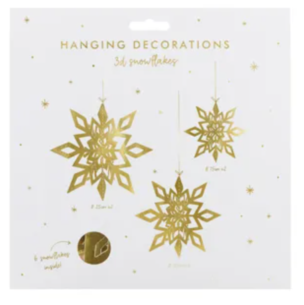 Snowflake decorative pendants, gold, 15-25cm (1 pack / 6 pcs.)