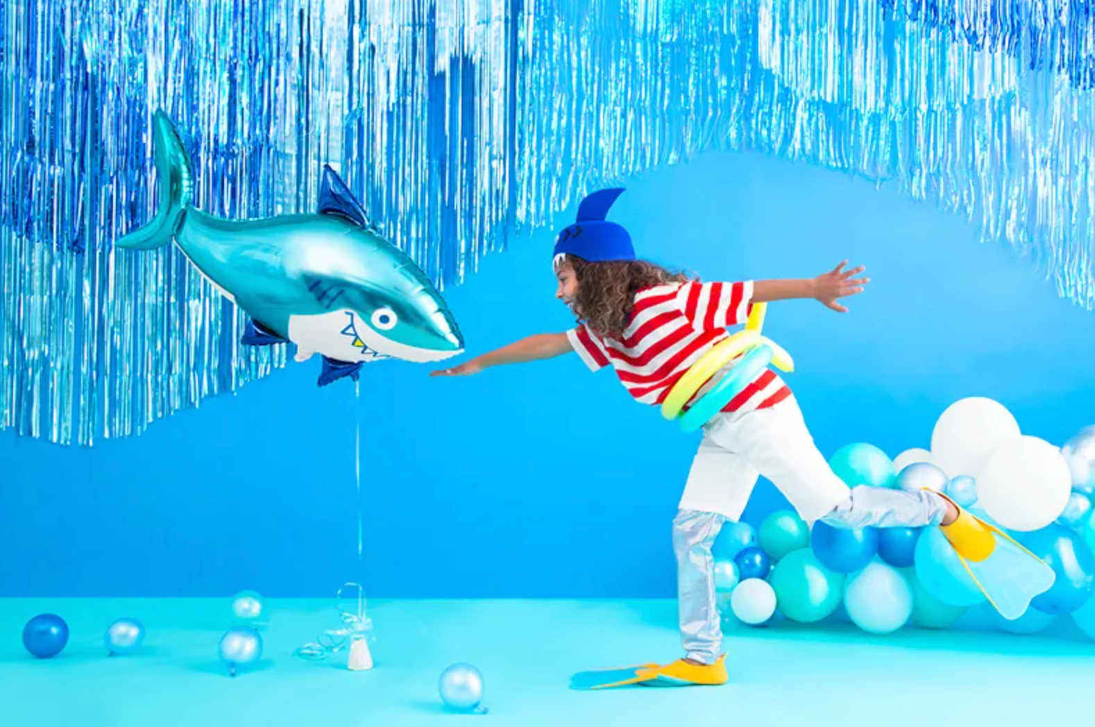 Błyszczący balon foliowy Rekin, mix kolorów, wymiary przed napompowaniem ok. 102 x 62 cm (40 x 24''),wymiary po napompowaniu ok.... Czytaj więcej