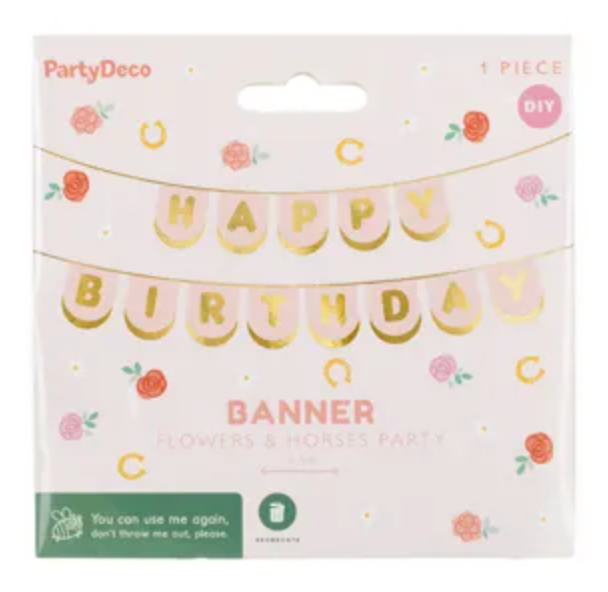 Baner Konie w kolorze jasnoróżowym ze złotym napisem Happy Birthday, wykonany z papieru, wymiary sznurka ok. 2,5 m. wymiary po... Czytaj więcej