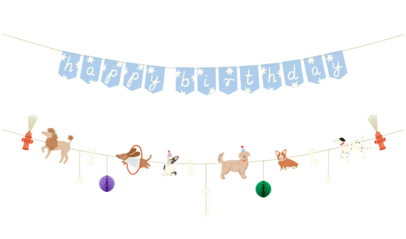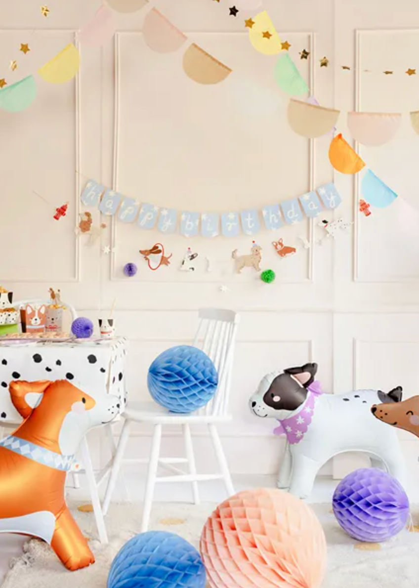 Baner Happy Birthday Pieski, mix kolorów, długość 210 cm. Produkt gotowy do użycia po wyjęciu z opakowania. Zestaw składa się... Czytaj więcej