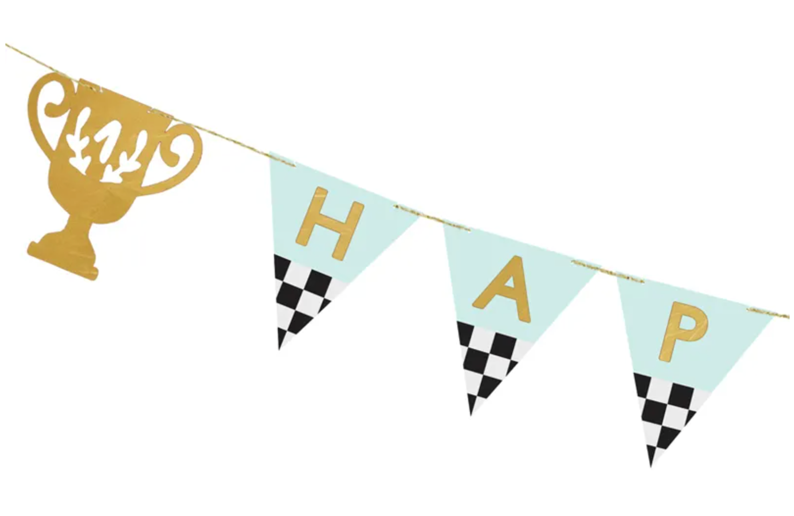 Baner Puchary z napisem ''Happy Birthday'' wykonany z papieru, mix kolorów. Wysokość ok. 13 cm, długość sznurka ok. 3 m.... Czytaj więcej