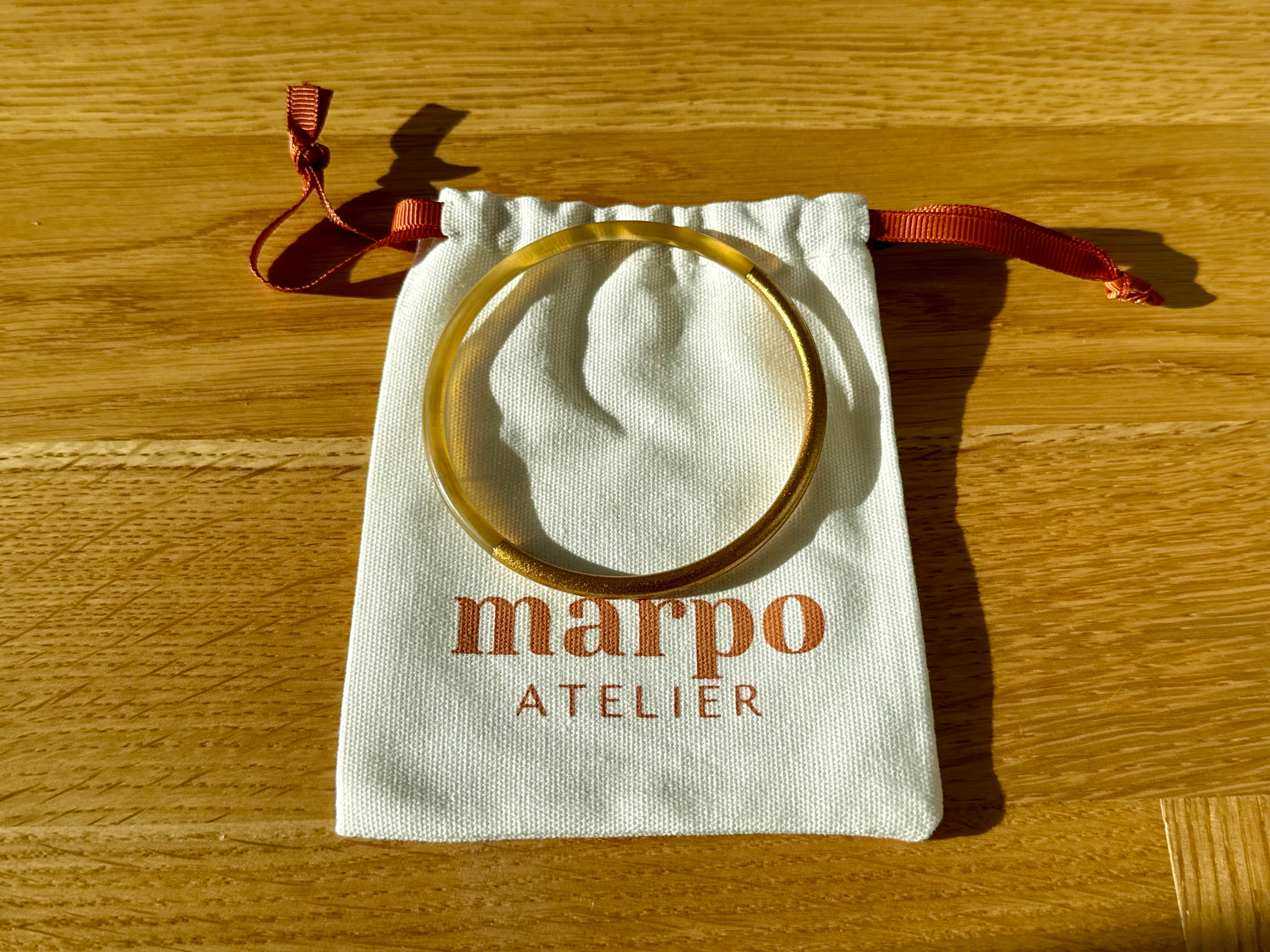 Minimalistyczna bransoletka KARMA w złotym odcieniu. Symbol równowagi i harmonii w eleganckim wydaniu od Atelier Marpo. kolory mogą się... Czytaj więcej