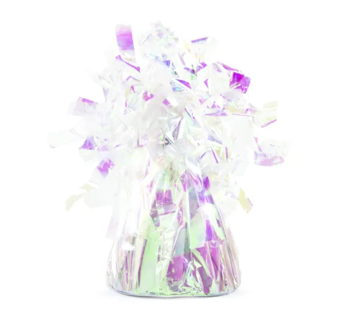 Ciężarek do balonów owinięty folią w kolorze opalizującym, wysokość ok. 7 cm, waga ok. 130 g. Czytaj więcej