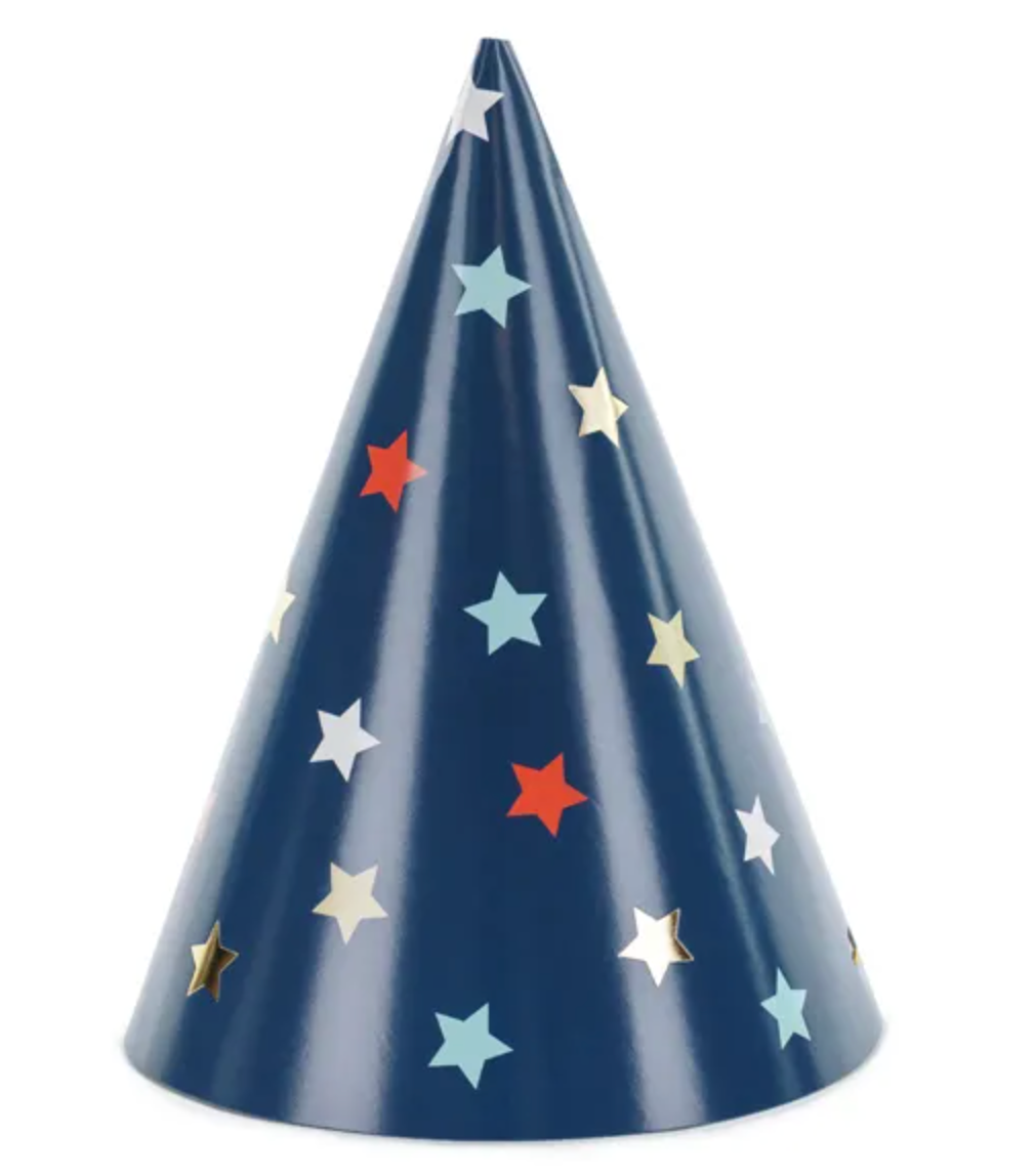 Czapeczki wykonane z papieru w kolorze granatowym z kolorowym nadrukiem gwiazdek, wysokość ok. 16 cm, średnica ok. 11 cm.(1 op.... Czytaj więcej
