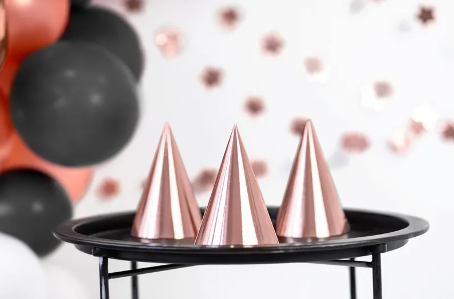 Czapeczki wykonane z papieru w kolorze różowego złota, wysokość ok. 16 cm, średnica ok. 10 cm.(1 op. / 6 szt.) Czytaj więcej