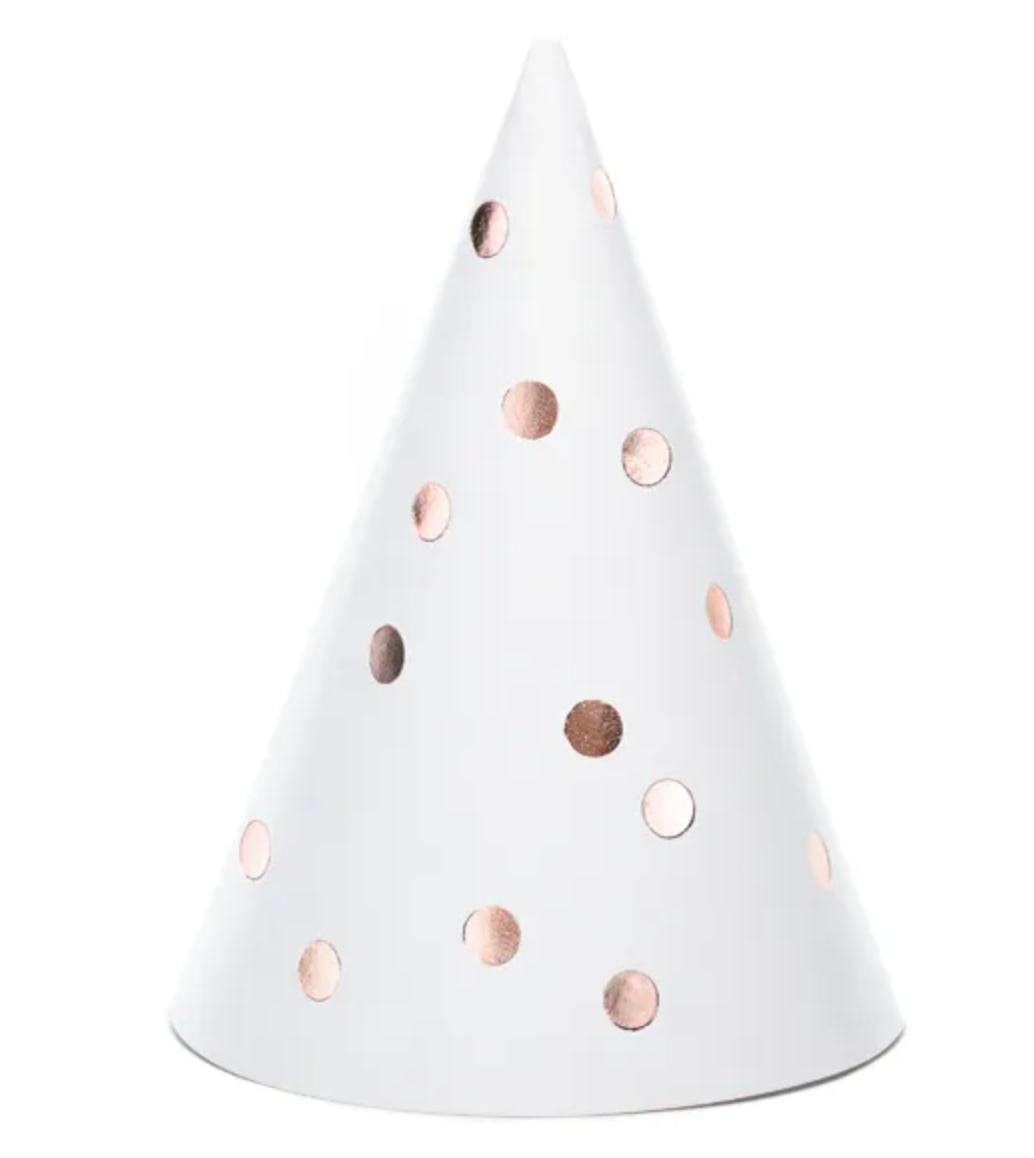 Czapeczki w kolorze białym ze wzorem w kropeczki w kolorze różowego złota, wysokość ok. 16 cm, średnica ok. 10 cm.(1... Czytaj więcej