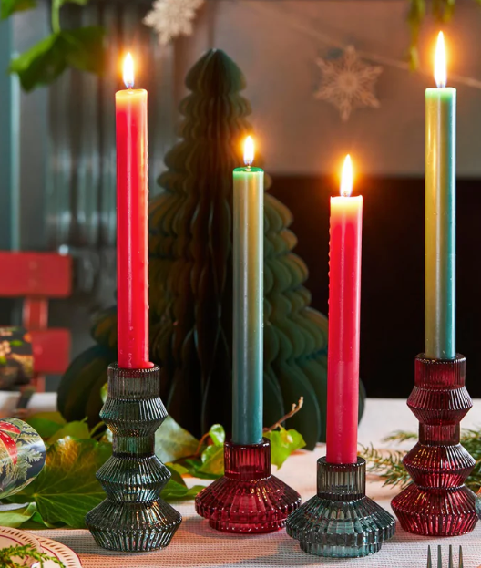 Czerwony mały świecznik szklany
