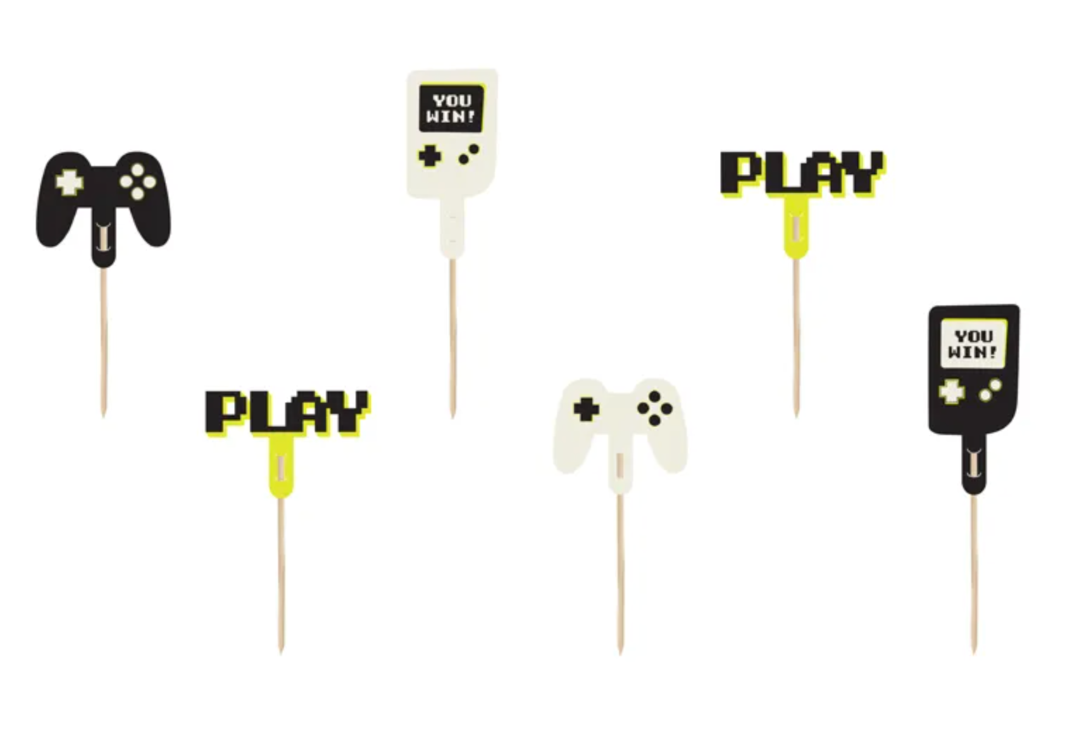 Dekoracje do muffinek - Gamer, zestaw zawiera 6 elementów (4 wzory), mix kolorów, wysokość ok. 6 - 10.5 cm. Produkt... Czytaj więcej