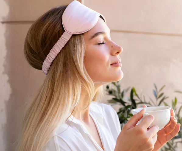 Delikatna jedwabna opaska w kolorze pudrowego różu, idealna na noc.