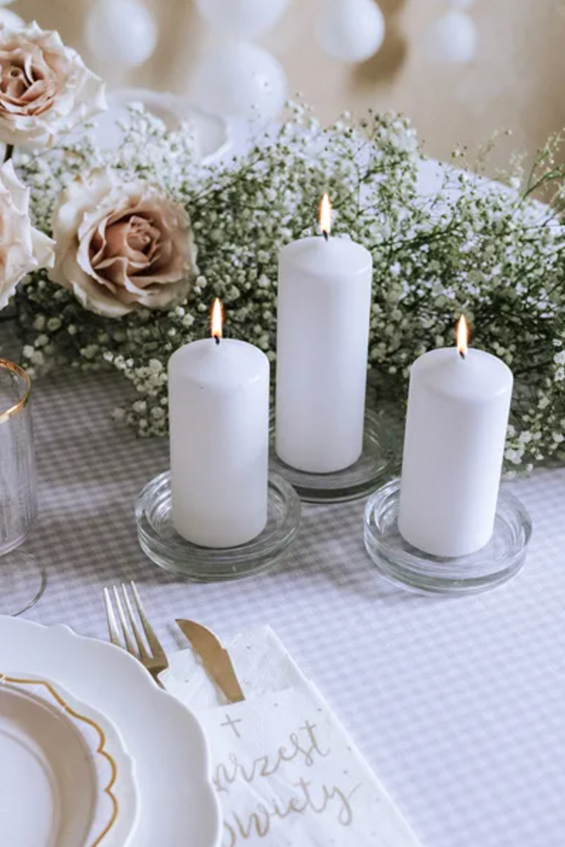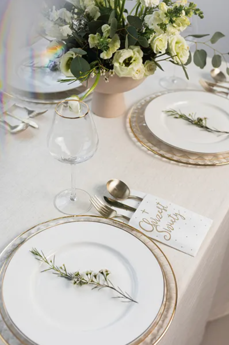 Serwetki papierowe z kieszonką na sztućce ''Chrzest Święty'' w kolorze białym ze złotym nadrukiem, wymiary złożonej serwetki ok. 10 x 20 cm.