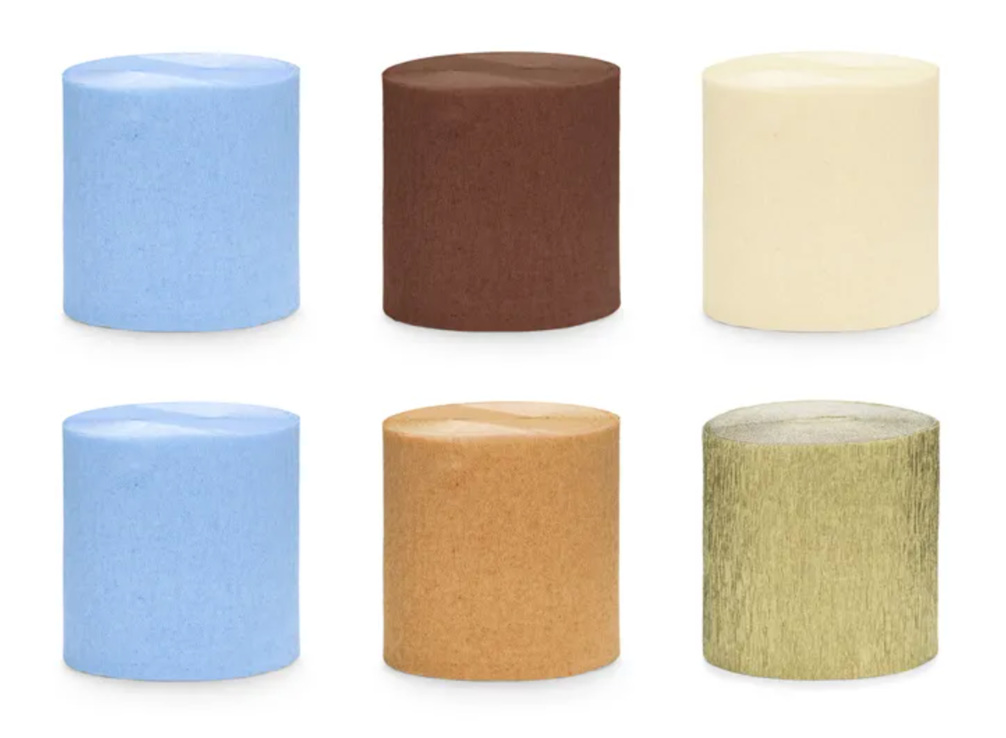 Krepa w kolorach odcieni niebieskich i brązowych, 6 sztuk, szerokość ok. 5 cm, długość ok. 10 m/rolkę(1 op. / 6... Czytaj więcej