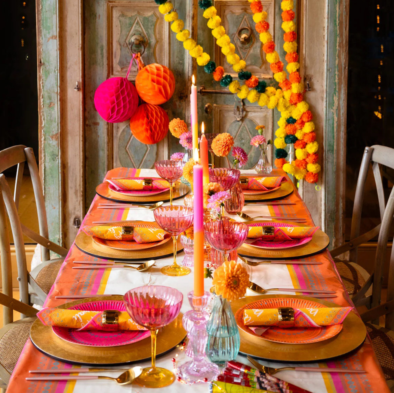 Obrus papierowy Spice – pomarańczowy, różowy i żółty