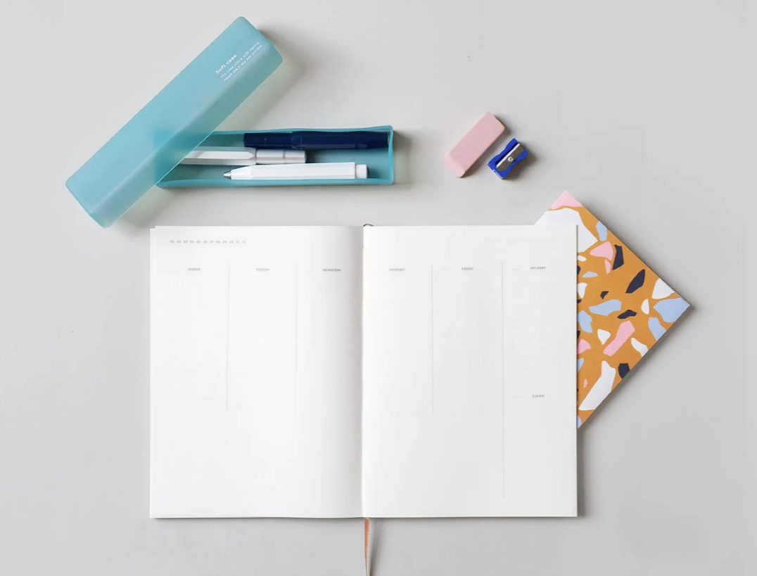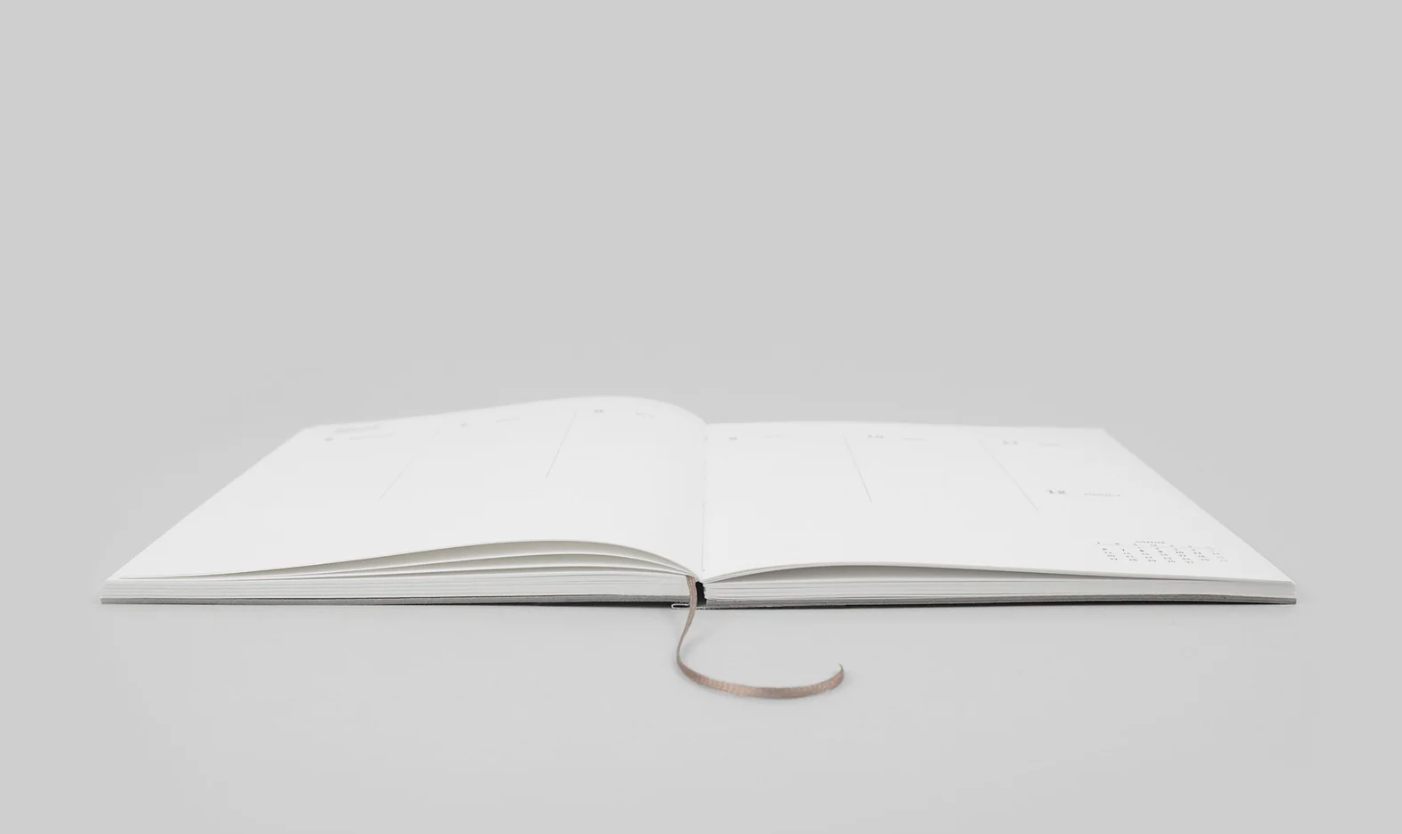 Planner Klasyk oprawiony jest w sztywną tekturę barwioną w masie. Grzbiet oklejony jest tkaniną, dzięki czemu swobodnie się otwiera i leży płasko. Daty wpisuje się ręcznie, więc planowanie można rozpocząć w dowolnym momencie. Wewnątrz znajduje się układ roczny, rozkładówki miesięczne i tygodniowe oraz strony w kropki na notatki. Papier o gramaturze 100 gsm w środku ma odcień naturalnej, ciepłej bieli i jest przyjemnie gładki. Poznaj lepiej jego właściwości i sprawdź, za co go uwielbiamy!