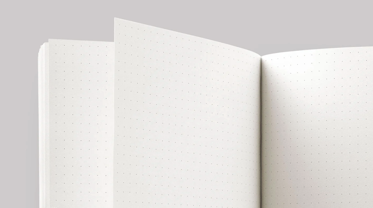 Planner Monolit jest niedatowany. Oznacza to, że daty wpisujesz ręcznie, więc planowanie możesz rozpocząć w dowolnym momencie w roku. Okładka zrobiona jest z ciemnografitowego, mięsistego kartonu. Miękka oprawa dodatkowo posiada skrzydełka, w których można przechowywać luźne notatki. Format "kwadratowe A5" – nie za mały, ale nadal poręczny. Obok kalendarium znajdziesz całą stronę z kropkowanym zadrukiem na notatki. Miękka oprawa dzięki specjalnemu łączeniu pozwala plannerowi otwierać się i leżeć całkowicie płasko.