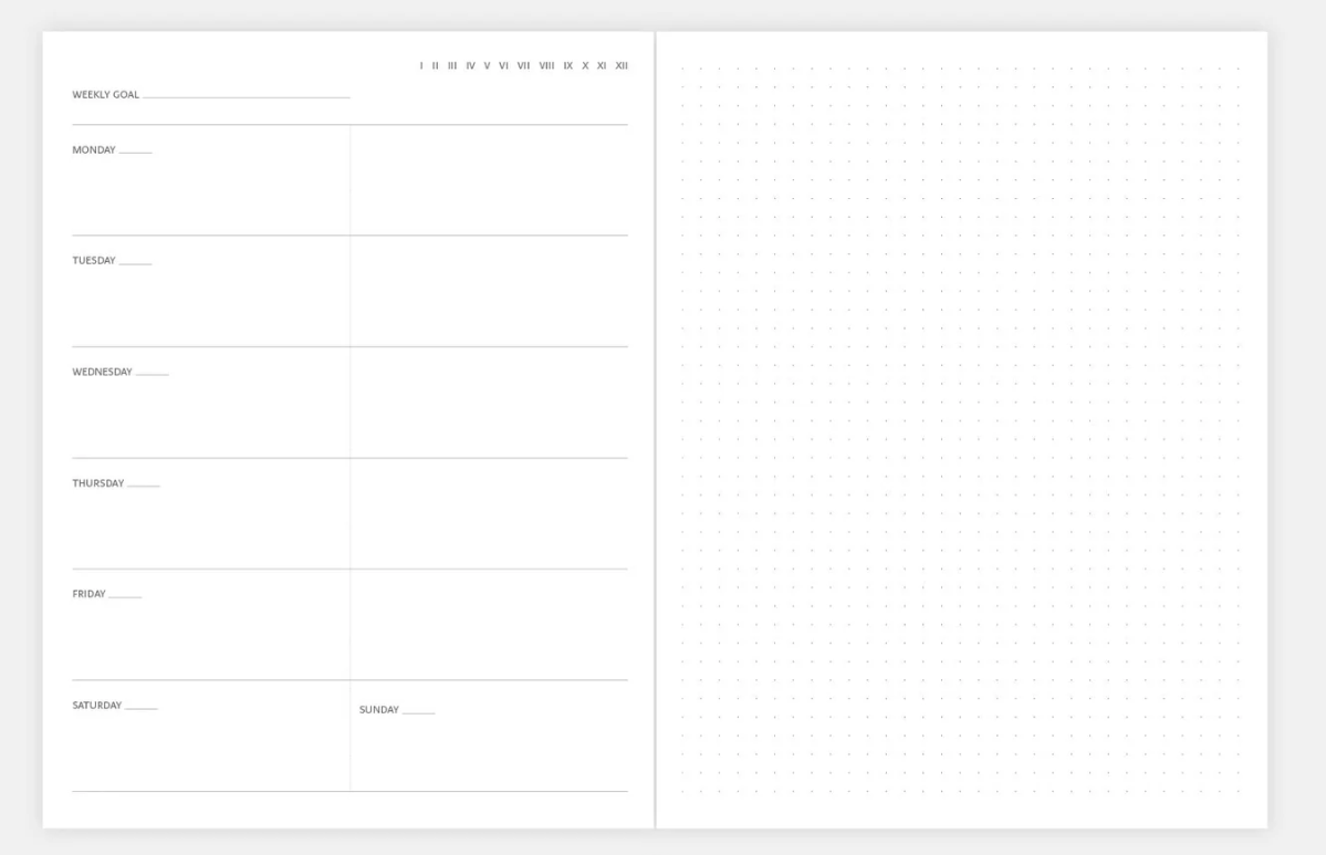 - zawartość: planner na 54 tygodnie + 80 stron w kropki na notatki na lekko kremowym, gładkim papierze