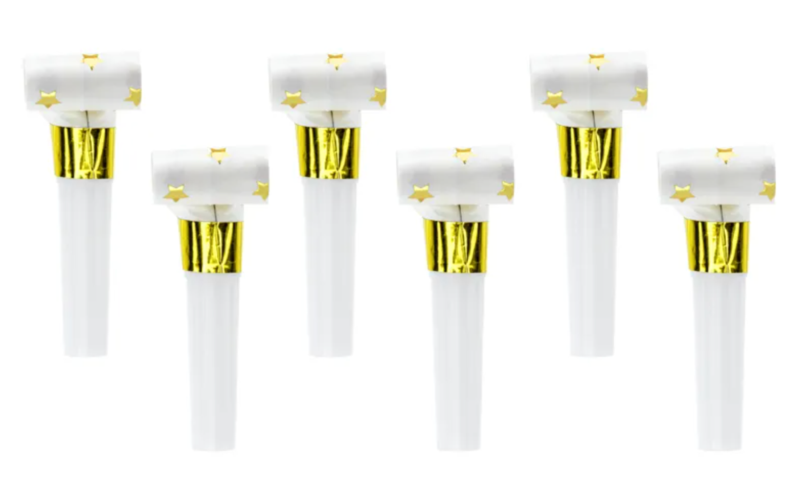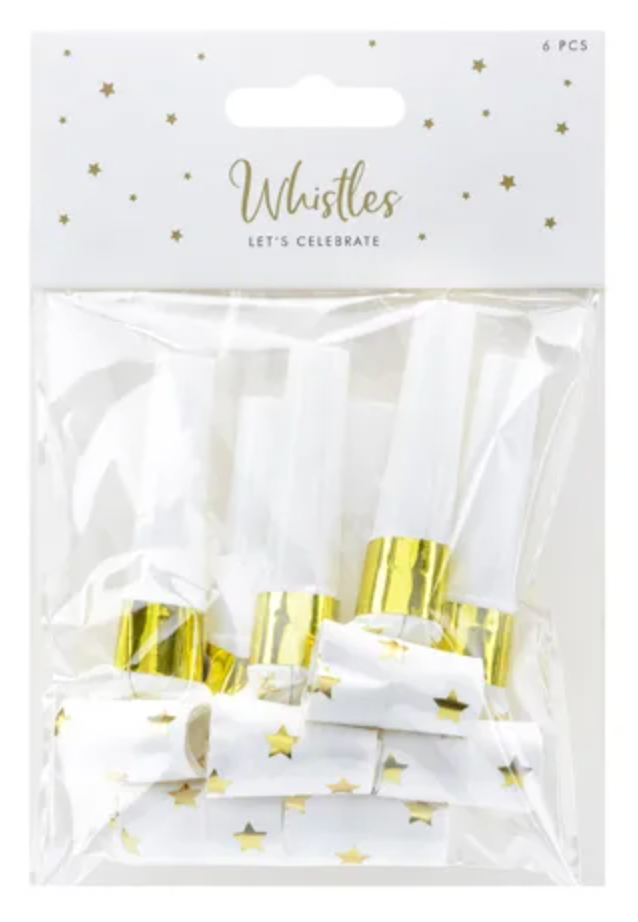 Gwizdki wykonane z papieru w kolorze białym ze złotym metalizowanym wzorem gwiazd.(1 op. / 6 szt.) Czytaj więcej