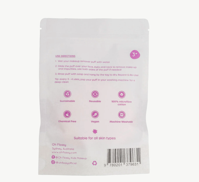 Pożegnaj się ze szorstkimi ściereczkami! Miękka pufka do demakijażu Oh Flossy Makeup Remover Puff została stworzona z myślą o dzieciach (i dorosłych!). Ułatwia zmywanie makijażu i farb do twarzy – wystarczy sama woda.