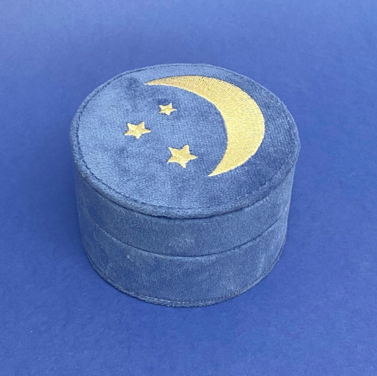 Małe pudełeczko na biżuterię z motywem księżyca i gwiazd. Czytaj więcej