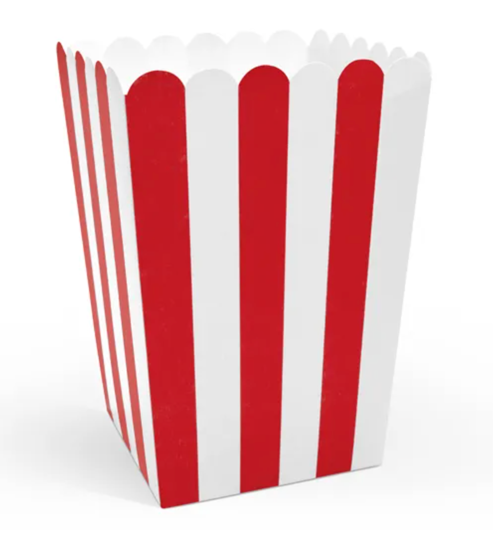 Pudełka na popcorn w kolorze czerwonym w białe paski, wymiary po złożeniu ok. 7 x 7 x 12,5 cm.(1 op.... Czytaj więcej