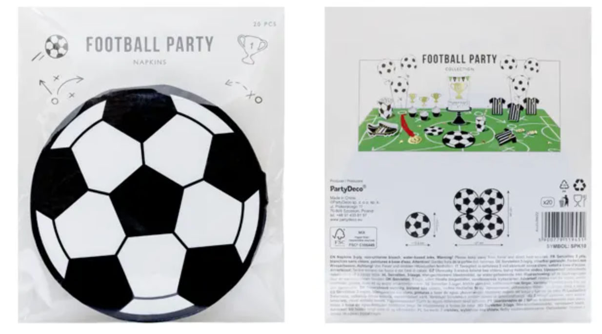 Serwetki papierowe Piłka w kolorze białym z czarnym nadrukiem, wymiary po rozłożeniu ok. 27 x 27 cm, wymiary po złożeniu... Czytaj więcej