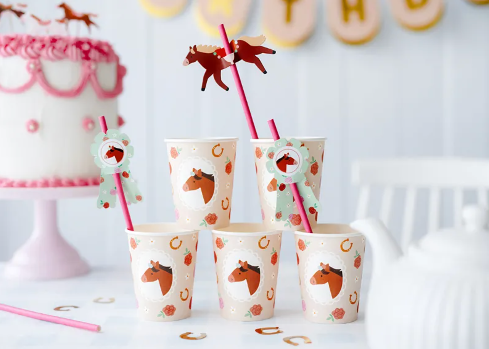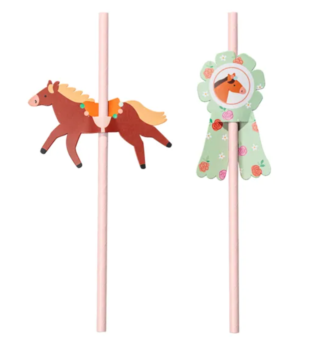 Słomki z nakładkami Konie wykonane z papieru, mix kolorów, wymiary słomki ok. 19.5 cm(1 op. / 6 szt.) Czytaj więcej