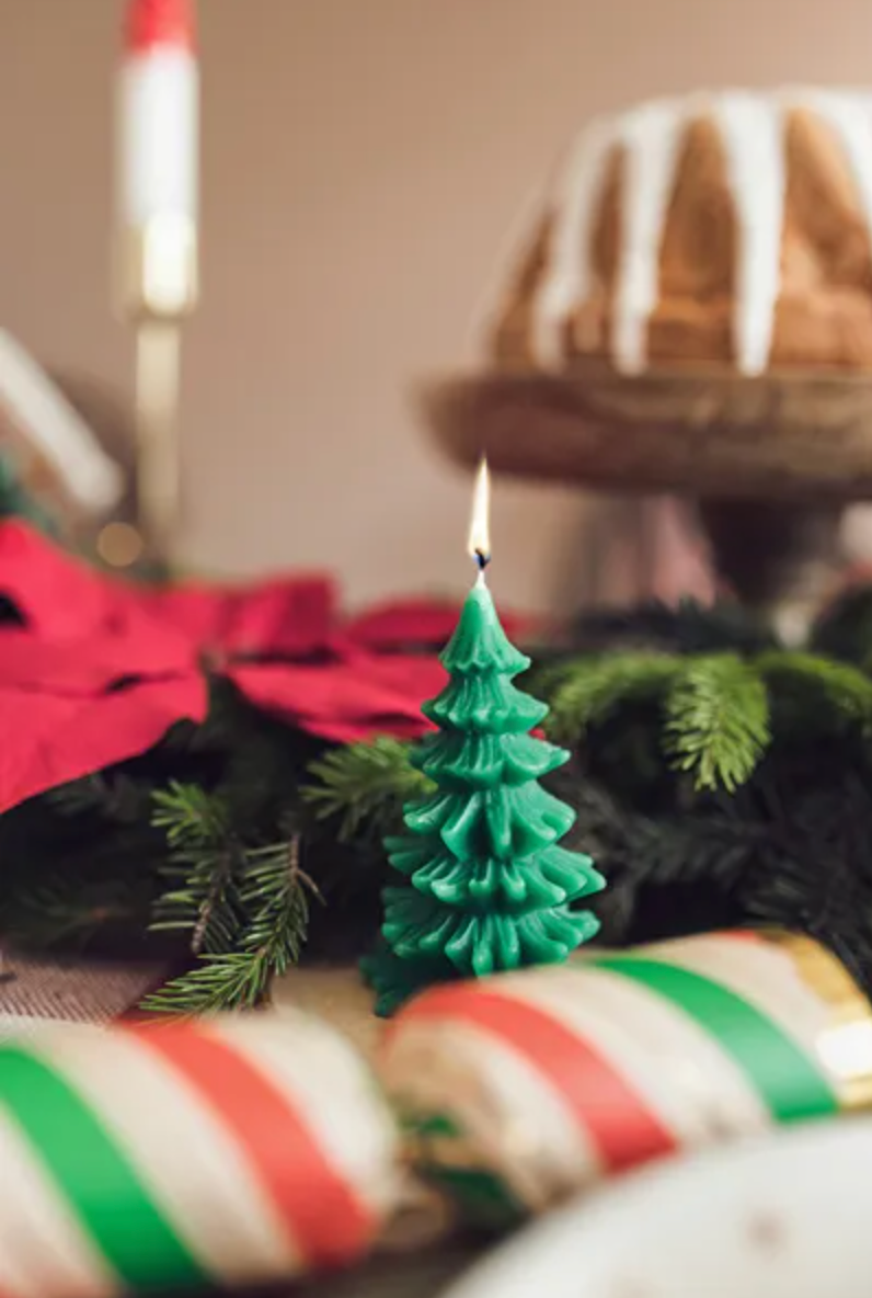 Świeca Choinka w kolorze ciemnozielonym, wysokość ok. 10 cm. Czas palenia: 5 godzin. Czytaj więcej