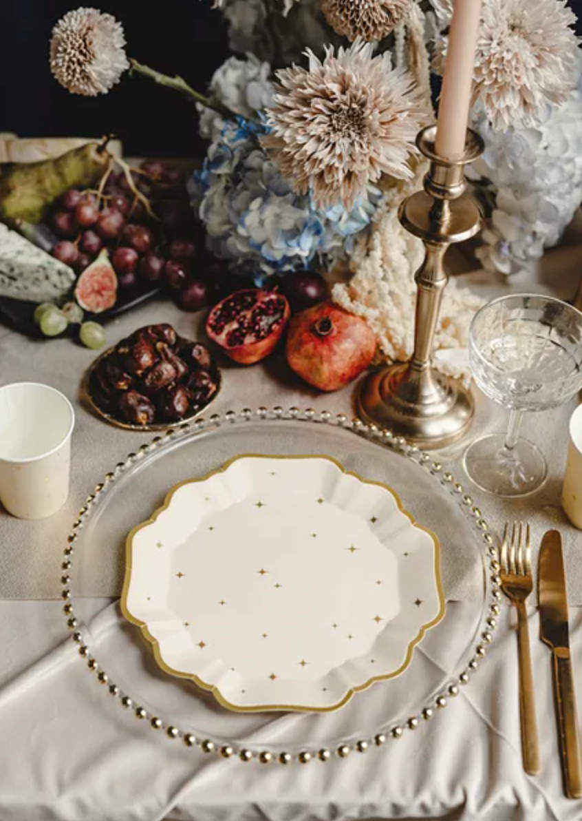 Talerzyki papierowe Gwiazdki w kolorze beżowym w złote gwiazdki, średnica ok. 21 cm(1 op. / 6 szt.) Czytaj więcej