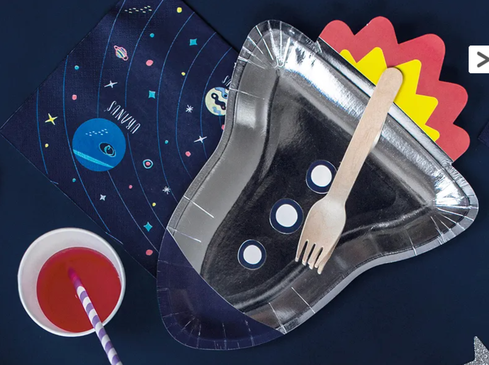Talerzyki papierowe Kosmos - Rakieta, mix kolorów, wymiary ok. 21,5 x 29,5 cm.(1 op. / 6 szt.) Czytaj więcej