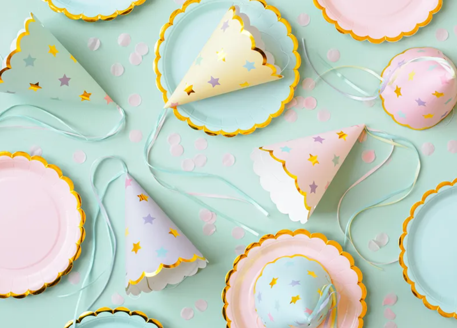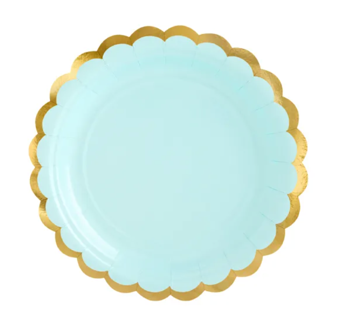 Talerzyki papierowe w kolorze miętowym ze złotymi metalizowanymi brzegami, średnica ok. 18 cm.(1 op. / 6 szt.) Czytaj więcej