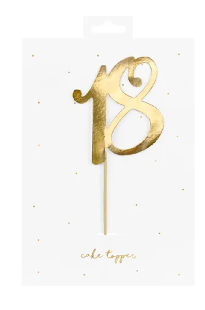 Topper na tort z liczbą 18 w kolorze złotym, wysokość ok. 20.5 cm. Czytaj więcej