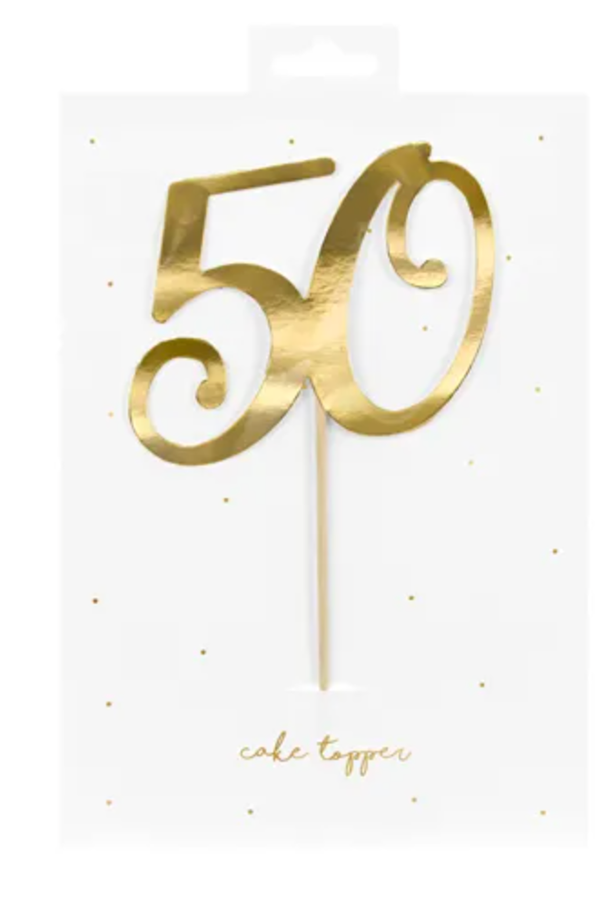 Topper na tort z liczbą 50 w kolorze złotym, wysokość ok. 20.5 cm. Czytaj więcej