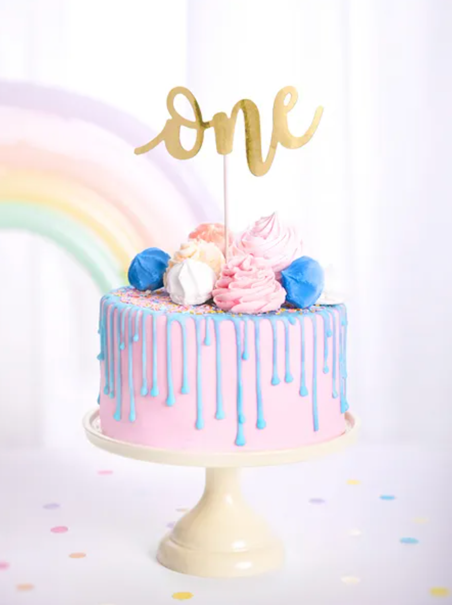 Topper na tort One w kolorze złotym, wysokość ok. 19 cm. Czytaj więcej