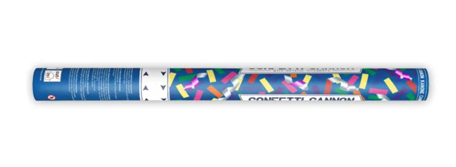 Tuba strzelająca papierowym, kolorowym konfetti i metalicznymi serpentynami, długość 60 centymetrów. Czytaj więcej