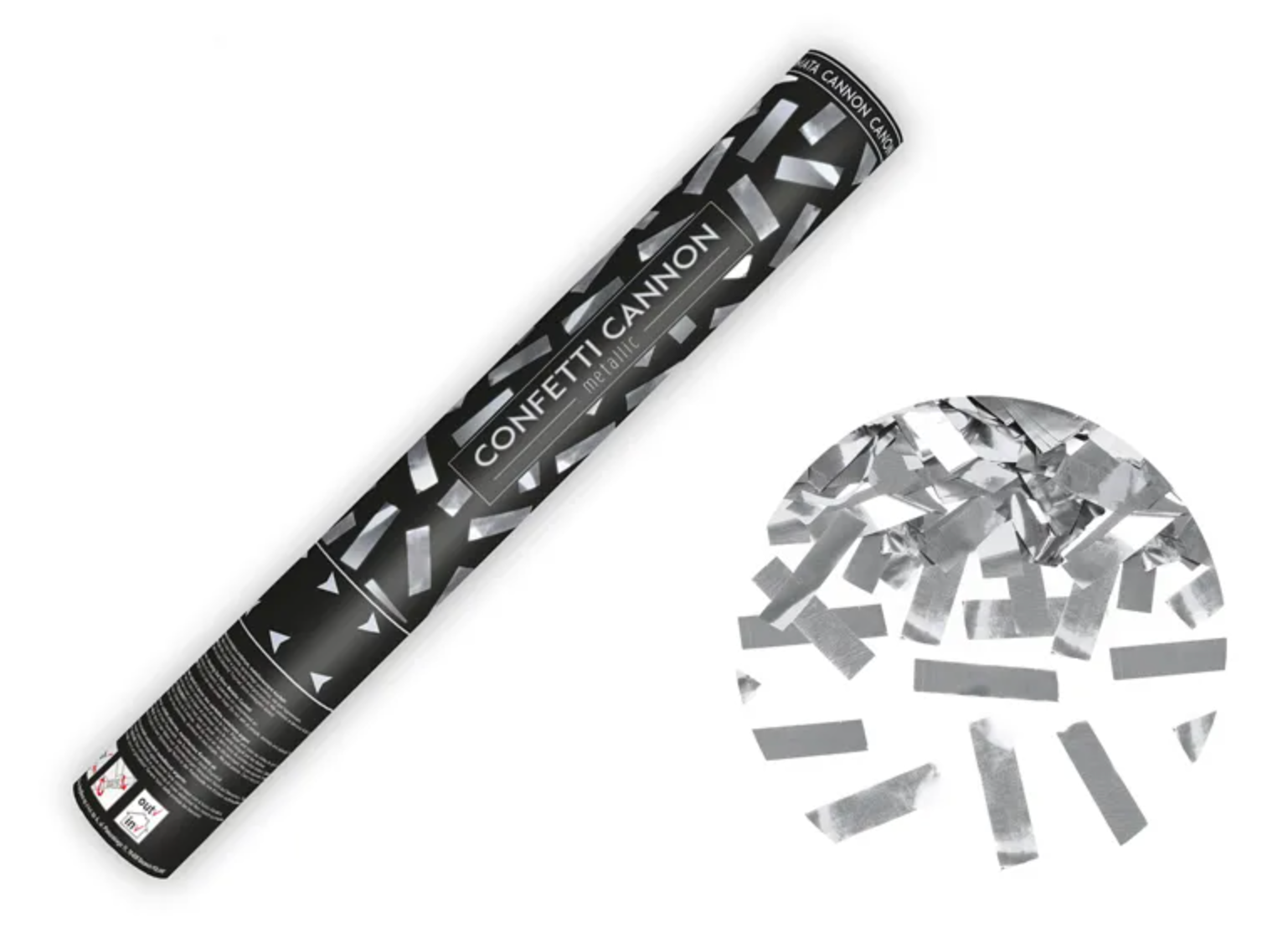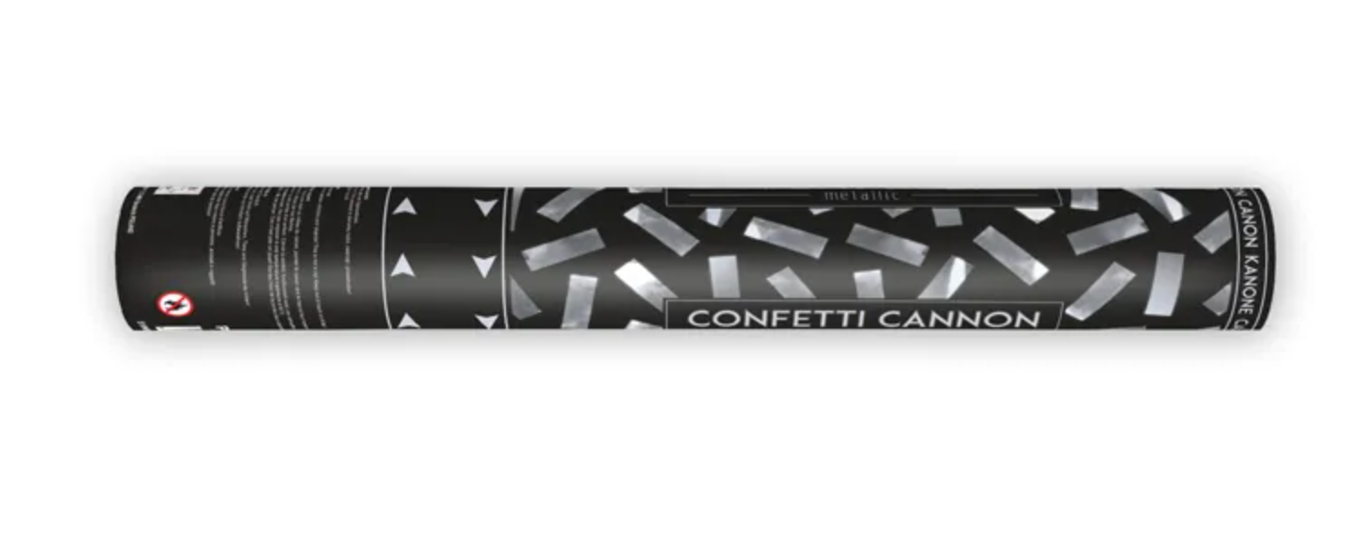 Tuba strzelająca metalicznym konfetti w kolorze srebrnym, długość 40 centymetrów. Czytaj więcej