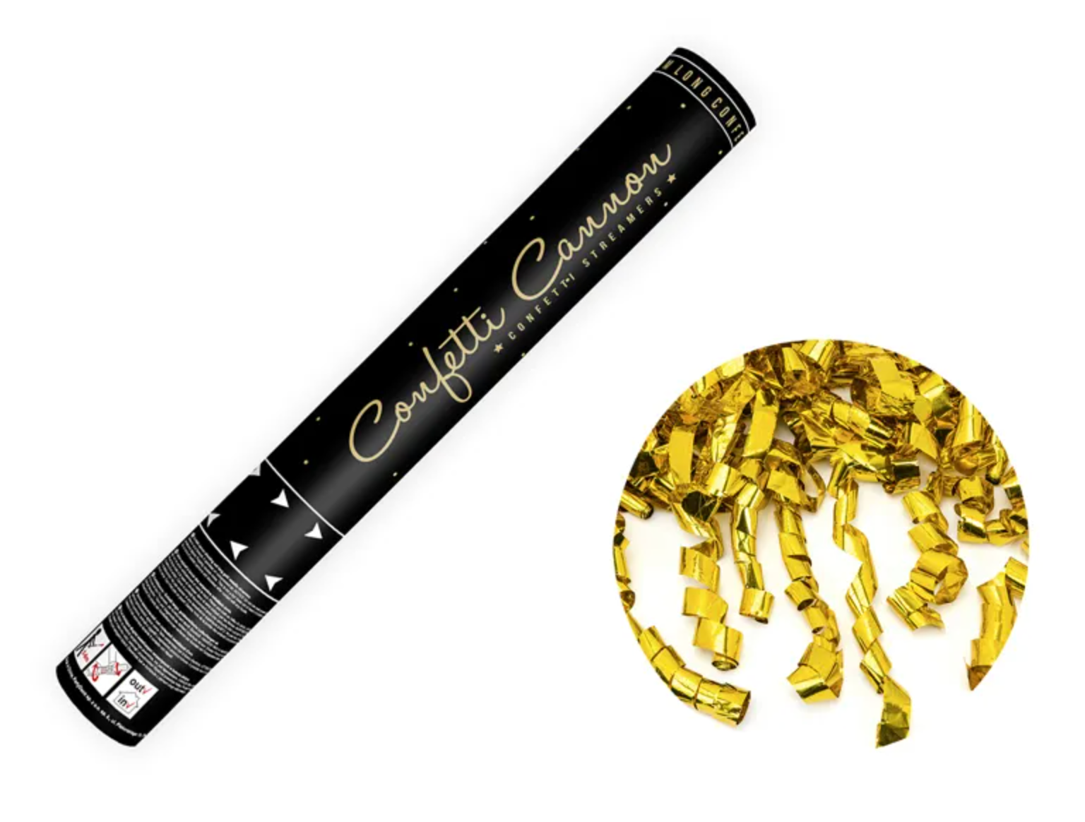 Tuba strzelająca długimi metalicznymi serpentynami w kolorze złotym, długość 40 cm. Czytaj więcej