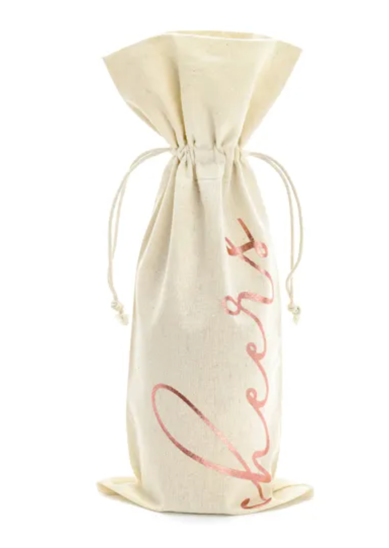 Ściągane woreczki na wino wykonane z bawełny, z napisem Cheers w kolorze różowego złota, wymiary ok. 15,5 x 36 cm.(1... Czytaj więcej
