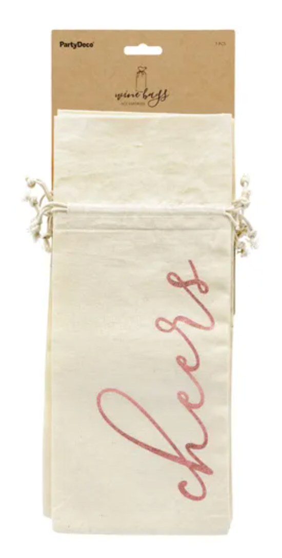 Woreczki bawełniane na wino - Cheers, różowe złoto 5 szt.