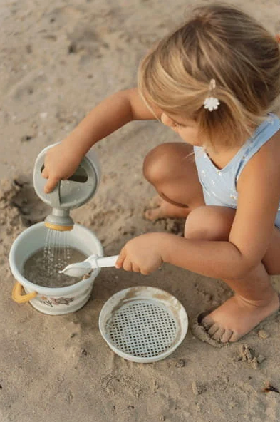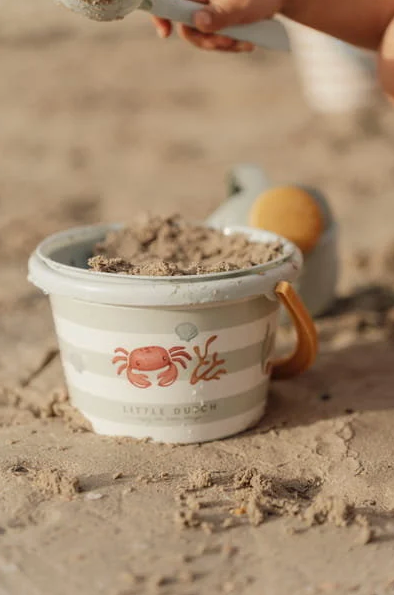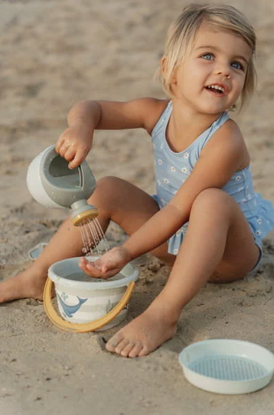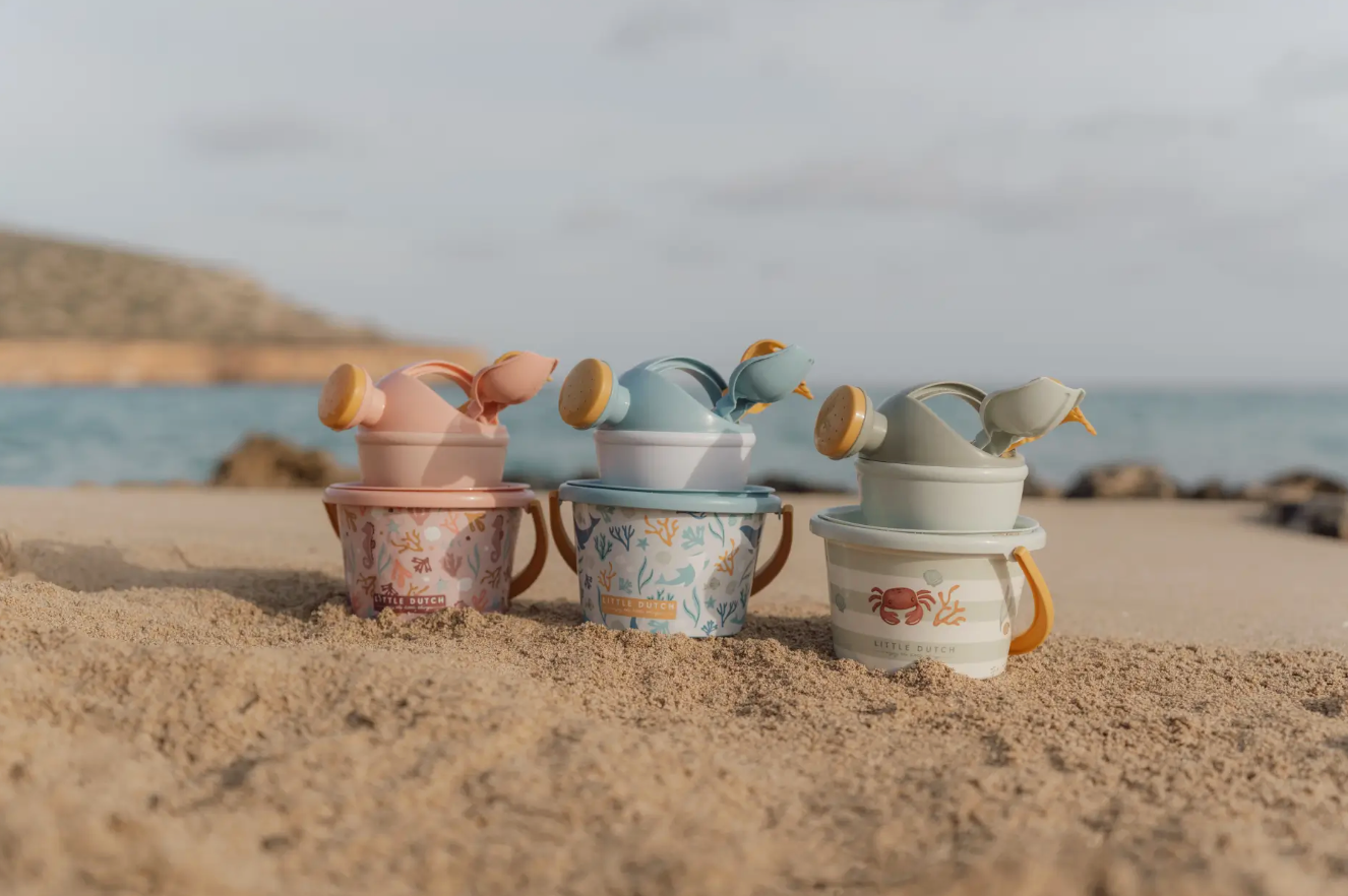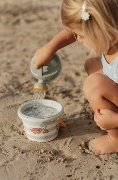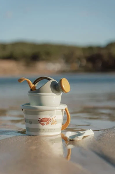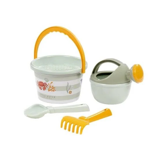 Zestaw plażowy 5 elementów z kolekcji Fresh Greens od Little Dutch. Ten 5-cio częściowy zestaw zawiera wszystkie gadżety, których Twoje dziecko będzie potrzebowało na plaży lub w piaskownicy: wiaderko, konewka, łopatka, grabki i sitko. Wykonany w szałwiowej kolorystyce z żółtymi akcentami motywu Fresh Greens. Doskonała zabawa w wodzie i na plaży!